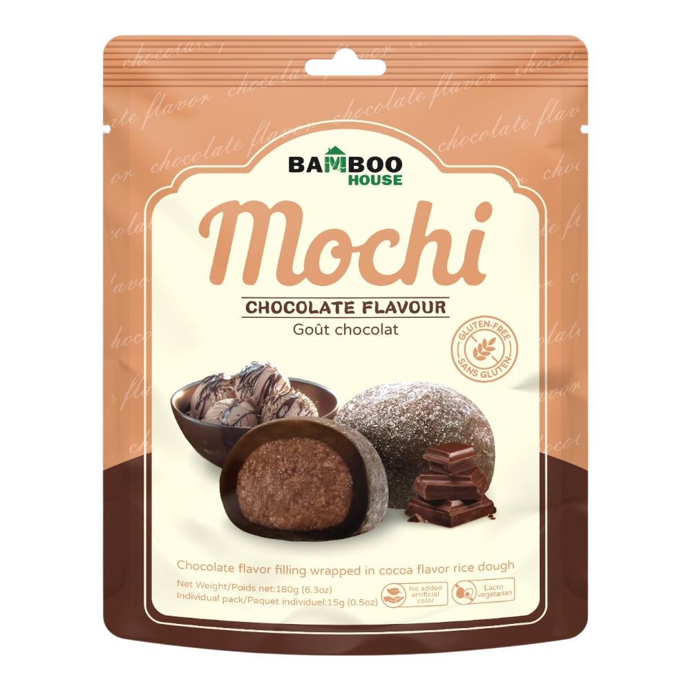 Ingredients List: Maltose, Mochi Filling (Sugar, Soybean Oil, Cocoa Powder, Palm Oil, Milk Powder, Lecithin (Soybeans), EmulsiEr (E471), ArtiCial Flavouring), Water, ModiEd Starch (E1442, E1200), Trehalose, Glutinous Rice Powder, Glucose, ReNed Coconut Oil, Maltodextrin, Potato Starch, ArtiCial Flavouring, Cocoa Powder, Stabiliser (E471, E466), Preservative (E202)