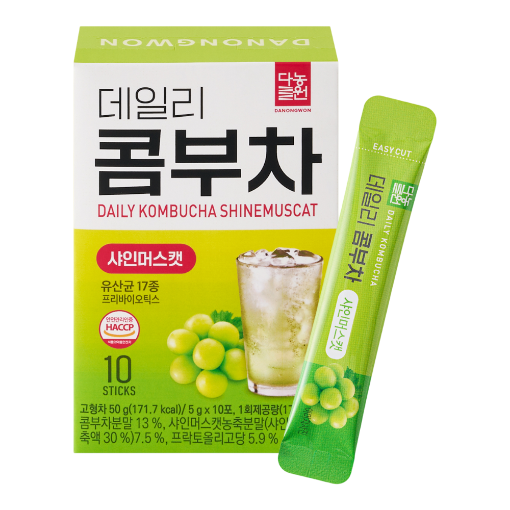 Ingredients List: Acidity Regulator (E330), Erythritol, Kombucha Powder (Sweetener (E955), Green Tea, Acidity Regulator (E330), Yeast), Raising Agent (E500(Ii)), Shinemuscat Juice Powder (Dextrin, Peach Concentrate), Fructooligosaccharide, Flavouring (Shinemuscat), Black Tea Extract Powder, Resistant Maltodextrin, Sweetener (E955), Mixed Probiotics Powder, Powdered Glucose, Dextrin, Vegetable Cream Mixture (Starch Syrup, Vegetable Oil).