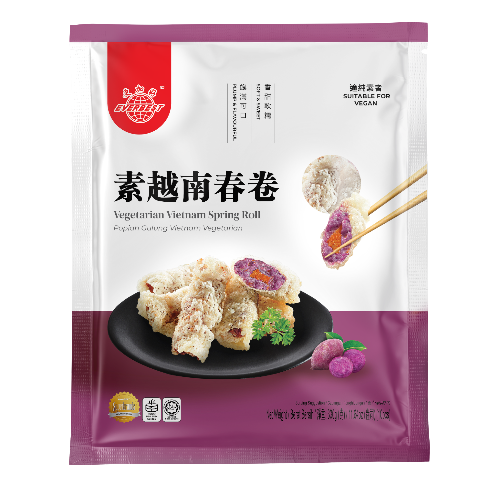Ingredients List: Netted Spring Roll Wrapper (26%) (Water, Rice Flour, Tapioca Starch, Palm Oil, Salt, Sugar), Purple Sweet Potato (21%), Yam, Orange Sweet Potato (15%), Sugar, Palm Oil, Corn Starch, Salt.
