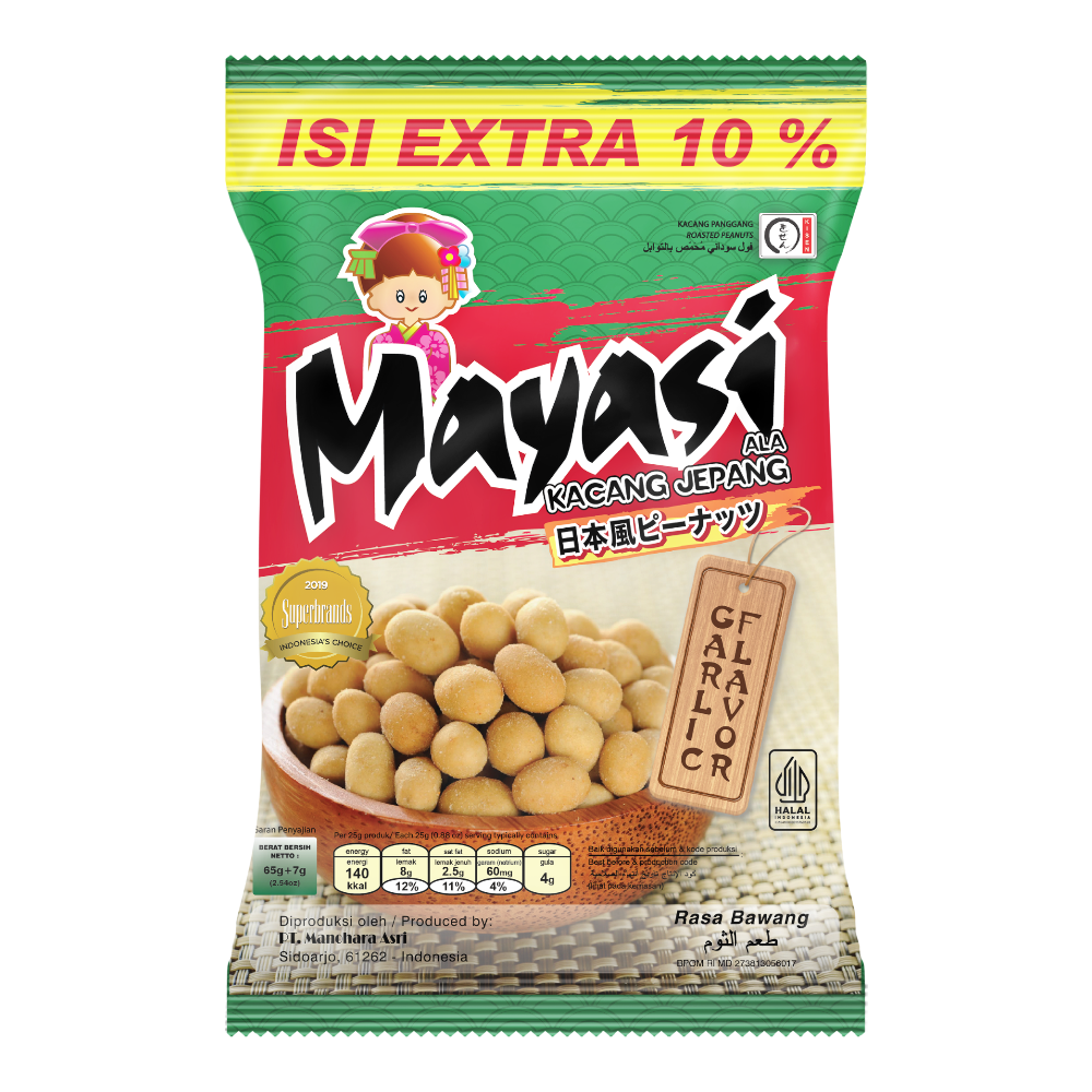 Ingredients List: Peanuts (45.5%), Maize Starch, Wheat Flour, Sugar, Palm Olein (Contain Natural Antioxidant Rosemary Extract (0.05%)), Garlic Seasoning (Sugar, Maltodextrin, Spices (Garlic), Salt, Yeast Extract, Hydrolysed Vegetable Protein (Soybean), Flavour Enhancer (E635), Anti-Caking Agent (E551), Artificial Chicken Flavouring) (3.5%), Fresh Garlic (2%), Raising Agent (E503(Ii)), Salt, Flavour Enhancer (E621).