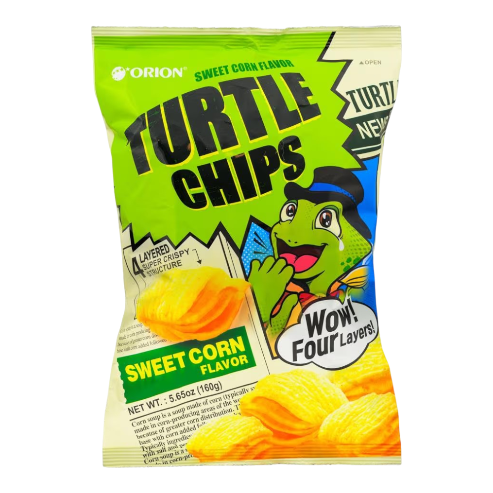 Ingredients List: Turtle Chips Pellet (Corn Snackmix, Maize Flour, Vegetable Oil, Acidity Regulator (Sodium Bicarbonate (E500(Ii)), Sweet Corn Powder, Salt), Vegetable Oil, Corn Soup Seasoning (Sugar, Roast Corn Flavoured Powder, Sweet Corn Powder, Salt, Crystalline Fructose, Sweet Corn Flavour, Corn Flavour, Seasoning K, Anti Caking Agent (Silicon Dioxide, Dextrin, Oak Mushroom Extract Powder, Acidity Regulator (Citric Acid), Anhydrous, Parsley, Butter Mix Powder (Milk, Soybean), Molasses Powder (Wheat). May Contain Coconut.