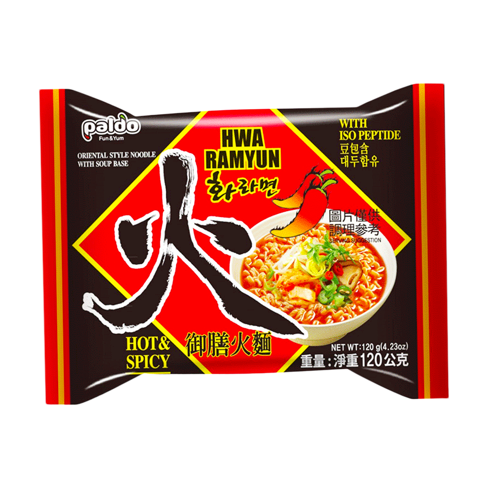 Ingredients List: Noodles: Wheat Flour, Palm Oil, Potato Starch, Modified Potato Starch, Onion Extract, Salt, Emulsifiers: E420, E471, E322 (Soy), Wheat Gluten, Acidity Regulators: E500, E501, E450, E452, Stabilizer: E412, Colouring: E101, Green Tea Extract. Seasoning Mix: Seasoning Powder (Red Chilli Pepper, Black Pepper, Kimchi [Cabbage, Red Chilli Pepper, Salt, Garlic, Ginger]), Flavour Enhancers: E621, E635, E363, Meat Stock Powder (Beef, Chicken, Salt, Yeast Extract), Sugar, Soy Sauce Powder (Water, Salt, Soybean, Acidity Regulator: E500), Vegetable Powder (Onion, Garlic), Colouring: E160C, Acidity Regulator: E341. Dried Vegetable Flakes (Welsh Onion, Carrot, Cabbage, Mushroom, Pimiento).
