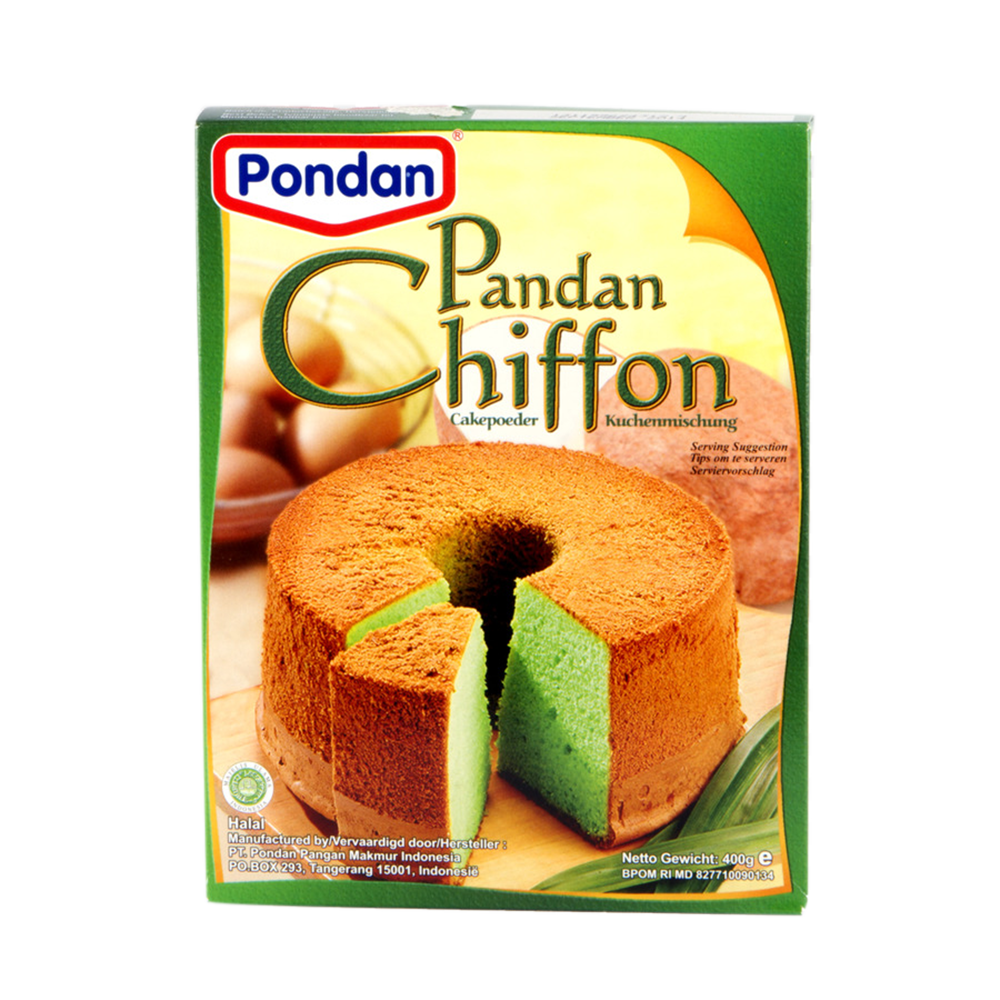 Ingredients list: Wheat flour, Corn starch, Sugar, Skim milk powder, Baking powder, Emulsifier, Pandan flavor, Food Color (FD&C Blue 1/E133, FD&C Yellow 5/E102)