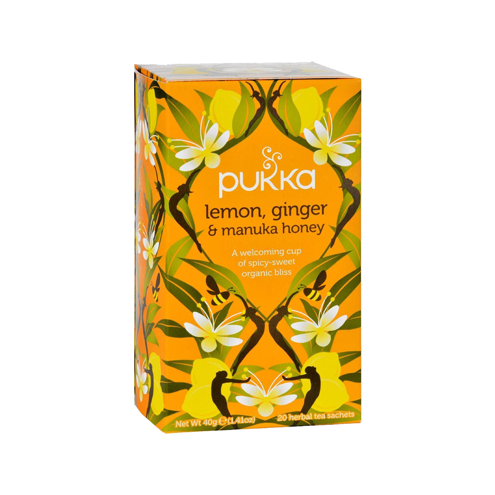 Ingredients List: Ginger Root (32%), Licorice Root, Elderflower, Sweet Fennel Seed, Lemon, Verbena Leaf, Turmeric Root, Lemon Essential Oil Flavour (6%), Lemon Whole (6%), Lemon Myrtle Leaf, Manuka Honey Flavour (2%), 40% Fair Trade Ingredients Certified According To The Fair For Life Standard - Licorice, Elderflower, Fennel.