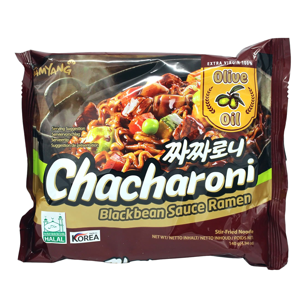 Ingredients List: Noodle (73,7%): Wheat Flour, Modifed Tapioca Starch, Refined Palm Ol, Wheat Gluten, Refined Salt, Emulsifier [Soy Lecithin (E322)] Soybean Oil, Acidity Regulator [Potassium Carbonate (E501), Sodium Carbonate (E500), Sodium Phosphate Dibasic (E339), Citric Acid (E301)], Thickener [Guar Gum (E412)], Purified Water, Green Tea Flavor Oil. Soup (24%): Black Bean Paste, Water, Onion, Sugars (White Sugar, Corn Syrup), Soybean Oil, Colour (Caramel Color (E150C)], Artirical Beef Flavor Powder, Onion Powder, Textured Soy Protein Powder, Extra Virgin Olive Oil, Flavor Enhancer [Disodium 5-Ribonucleotied (E635)], Modified Potato Starch, Acidity Regulator [Potassium Carbonate (E501). Sodium Carbonate (500), Sodum Phosphate (E339(I)), Sodium Pyrophosphate (E450(I)]. Flake (2,3%): Textered Soy Protein, Dried Onion Flake, Dried Cabbage Flake, Freeze Dried Green Peas.